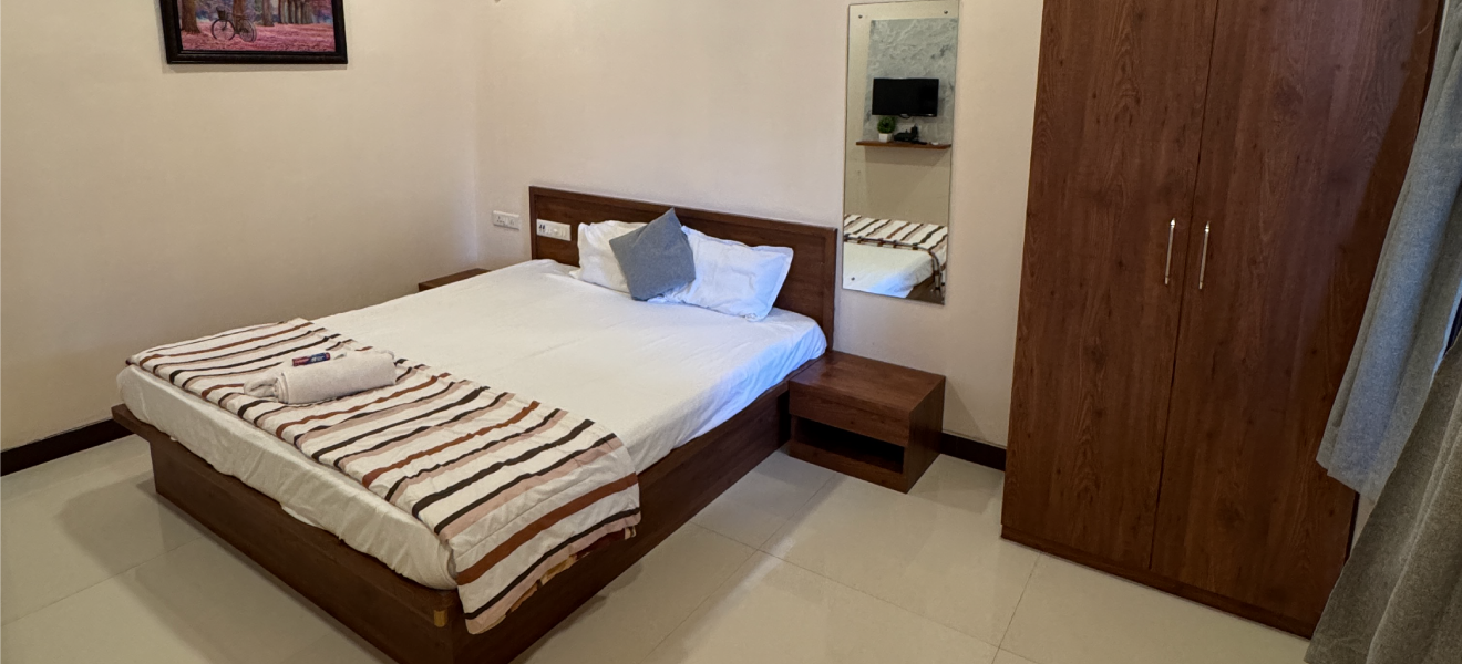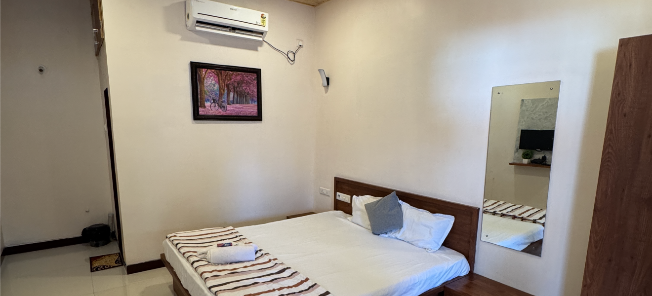 Step into our Deluxe Rooms where modern convenience meets Konkan charm. Designed for small families or groups of friends, these spacious rooms offer everything you need to stay connected while enjoying your coastal escape